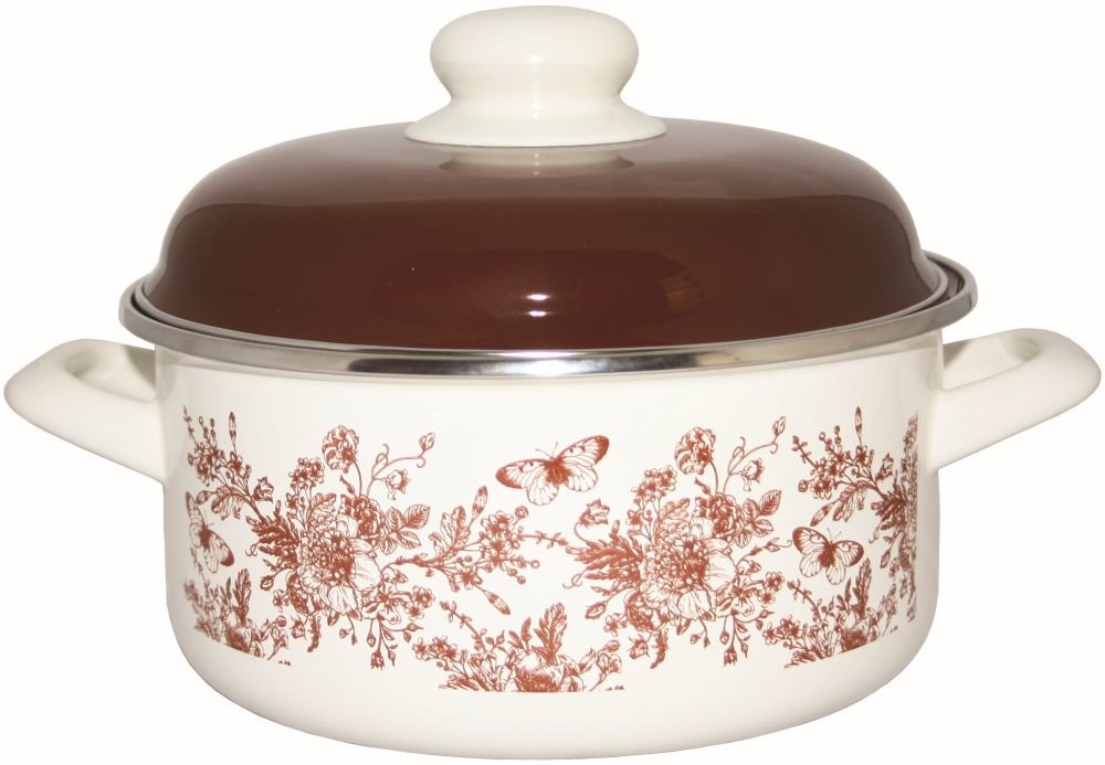 Hrnec 1 l smalt s poklicí dekor květin a motýlů 14 cm