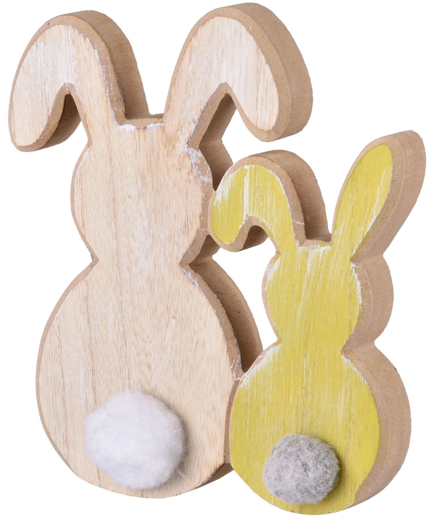 Dřevěná dekorace dva zajíčkové. Materiál - dřevo. Rozměry - výška 18 cm, šířka 14,3 cm, hloubka 2 cm. przeczytaj całość