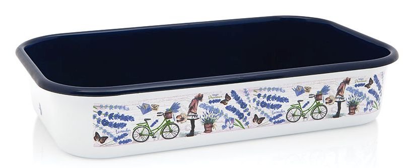 Smaltovaný pekáč s motivem PROVANCE. Pekáč je vhodný do myčky nádobí. Materiál - smalt. Rozměry - vnitřní 31,5x19 cm, vnější 33,7x21,2 cm, výška 6,8 cm. przeczytaj całość