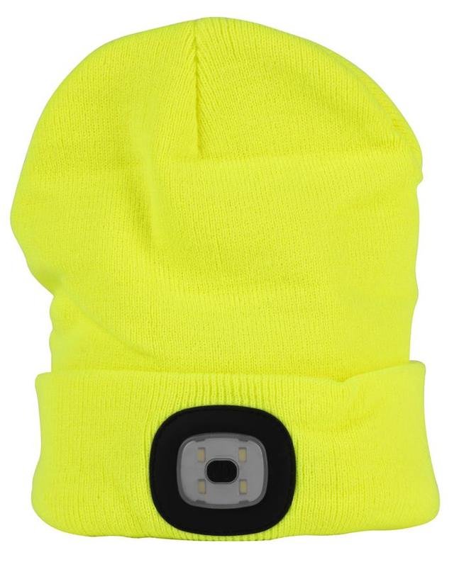 Pohodlná a teplá čepice do chladného počasí se zabudovanou LED čelovkou. Univerzální velikost. Barva - svítivě žlutá. Nabíjení LED světla pomocí USB portu. Možnost praní - po vyjmutí čelovky. TECHNICKÉ PARAMETRY - baterie 3,7 V Li-ion 300 mA, světelný zdroj 4 x SMD LED, svítivost 60 lm, doba nabíjení 3 h, doba svícení ± 2 h, 3 stupně intenzity svícení: 50/75/100%. Materiál - TPR + ABS.