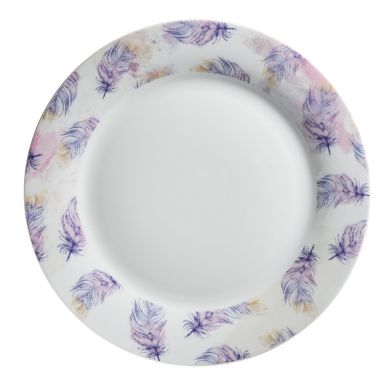 Naservírujte své jídlo na stylových moderních talířích posetých něžnými peříčky. Mělký talíř FEZA je vhodný do myčky nádobí i do mikrovlnné trouby. Materiál - porcelán. Rozměry - průměr 27 cm, výška 2,5 cm. przeczytaj całość