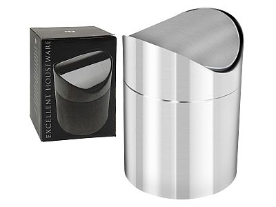Elegancki kosz na śmieci z obrotową pokrywą typu swing-bin. Idealny do domu lub biura. Łatwy w utrzymaniu czystości i jednocześnie pomaga utrzymać porządek. Materiał - stal nierdzewna. Wymiary - 16,5x12 cm. przeczytaj całość