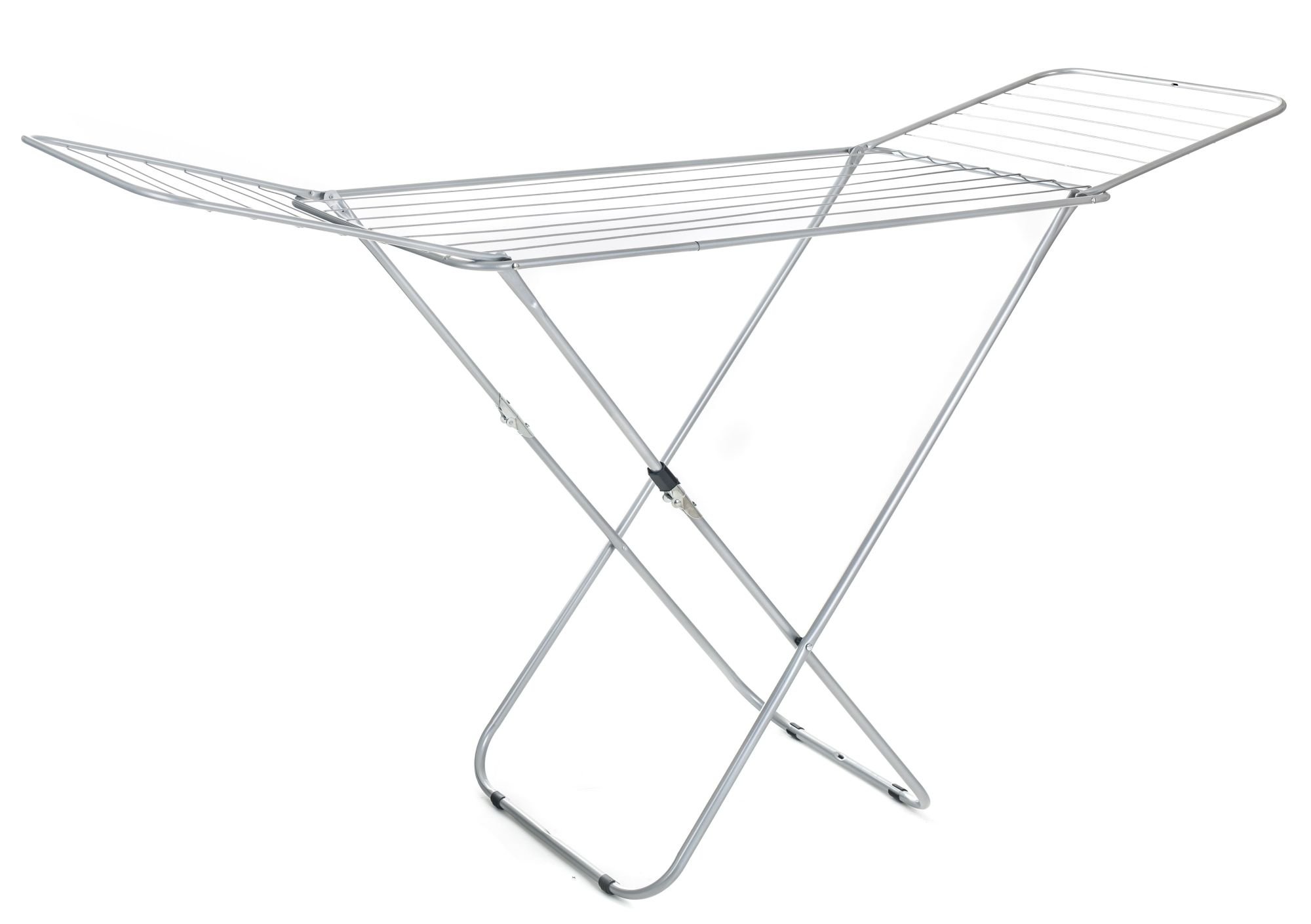 Rozkládací sušák ve stříbrném provedení. Celkový součet plochy na věšení prádla je 18 m. Nosnost 10 kg v rozložení na celou plochu sušáku. przeczytaj całość
