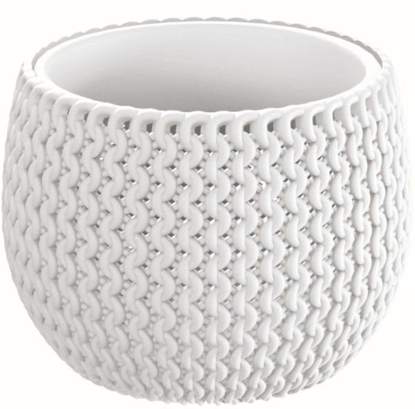 Květináč Splofy se vyznačuje vyřezávaným úpletem, který vkusně obohatí každý interiér. Pozornost upoutává svou strukturou na povrchu, ta je příjemná na dotyk. Věrně imituje úplet z příze. Odpovídá aktuálním trendům. Součástí je vložka na zasazení rostliny. Květináč je vhodný pro celoroční venkovní i vnitřní použití. Barva - bílá. Materiál - plast. Rozměry - objem 0,75 l, průměr 14,4 cm, výška 11 cm.