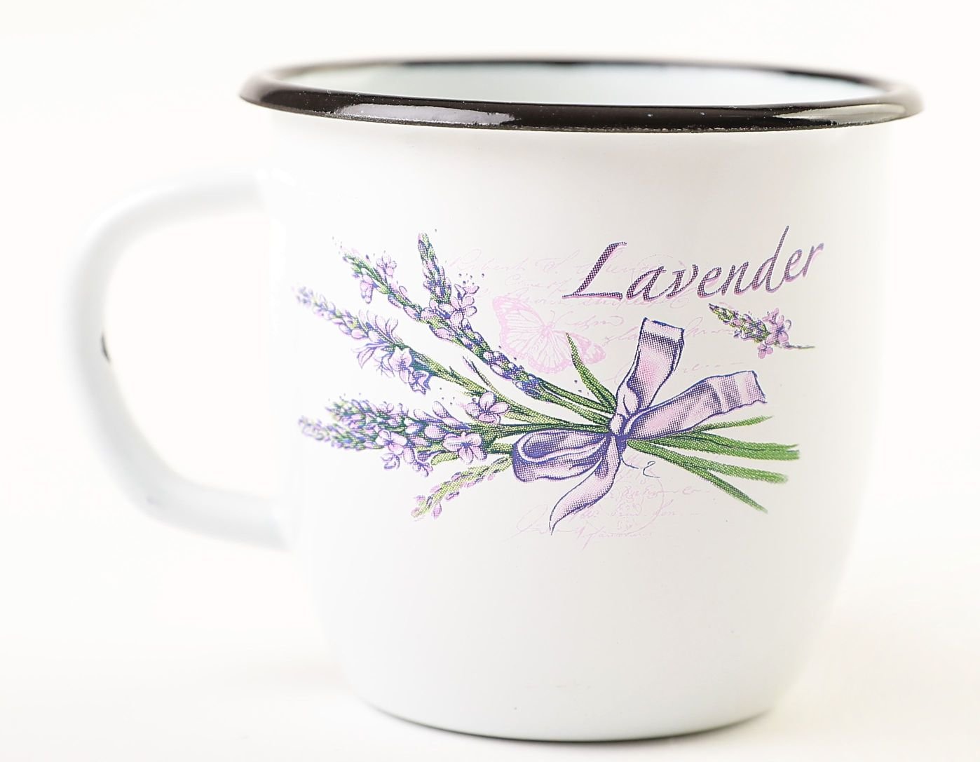 Smaltovaný hrneček s motivem levandule o objemu 250 ml. Je vhodný do myčky nádobí. Materiál - smalt. Rozměry - výška 7,2 cm, průměr 7 cm. przeczytaj całość