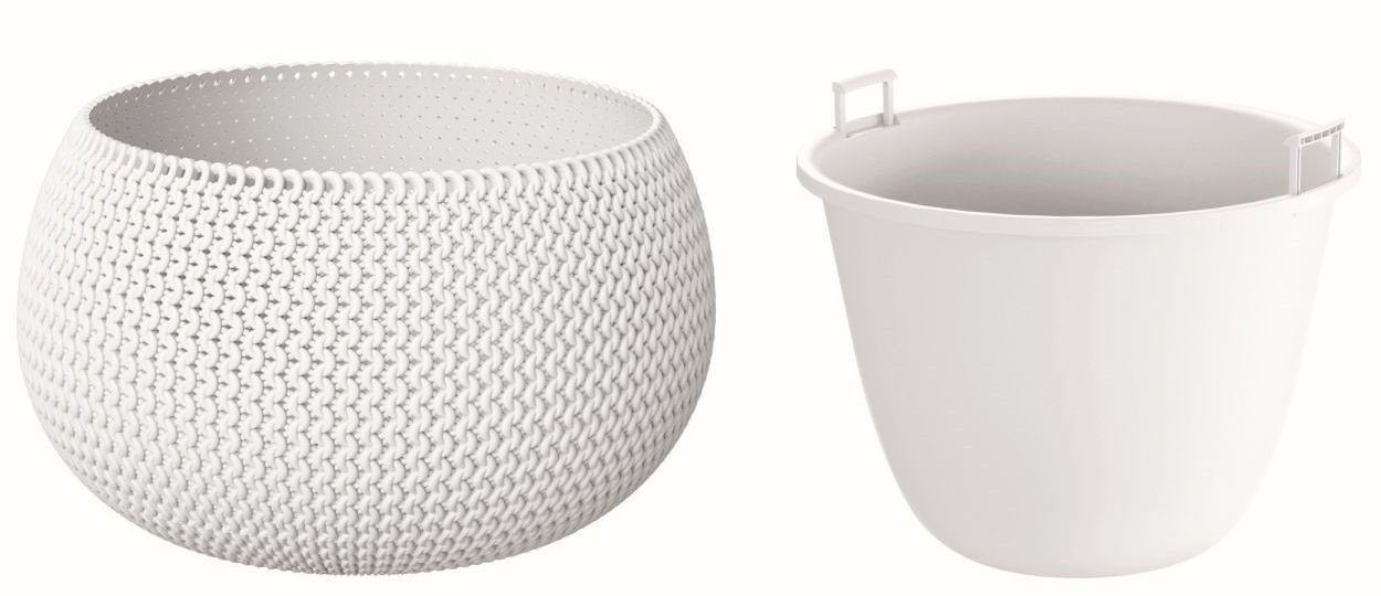 Květináč Splofy se vyznačuje vyřezávaným úpletem, který vkusně obohatí každý interiér. Pozornost upoutává svou strukturou na povrchu, ta je příjemná na dotyk. Věrně imituje úplet z příze. Odpovídá aktuálním trendům. Součástí je vložka na zasazení rostliny. Květináč je vhodný pro celoroční venkovní i vnitřní použití. Barva - bílá. Materiál - plast. Rozměry - objem 3,9 l, průměr 29 cm, výška 19,5 cm.