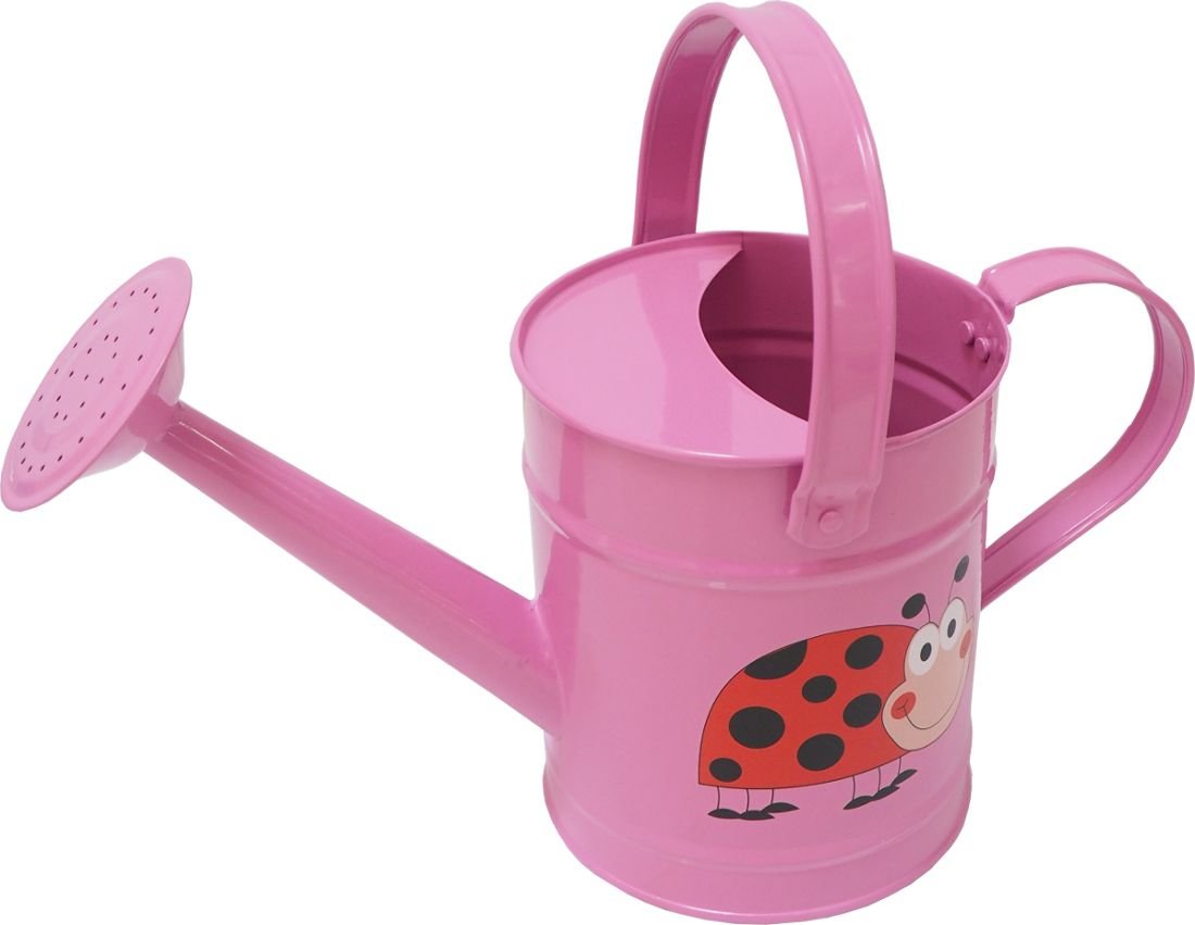 Dětská pevná kovová konvička na zalévání v růžové barvě s motivem berušky. Kropítko je přidělané napevno. Objem 1,6 l. Rozměry - výška 21 cm, šířka od kropítka po ucho 30 cm, průměr nádoby na vodu 12 cm. przeczytaj całość