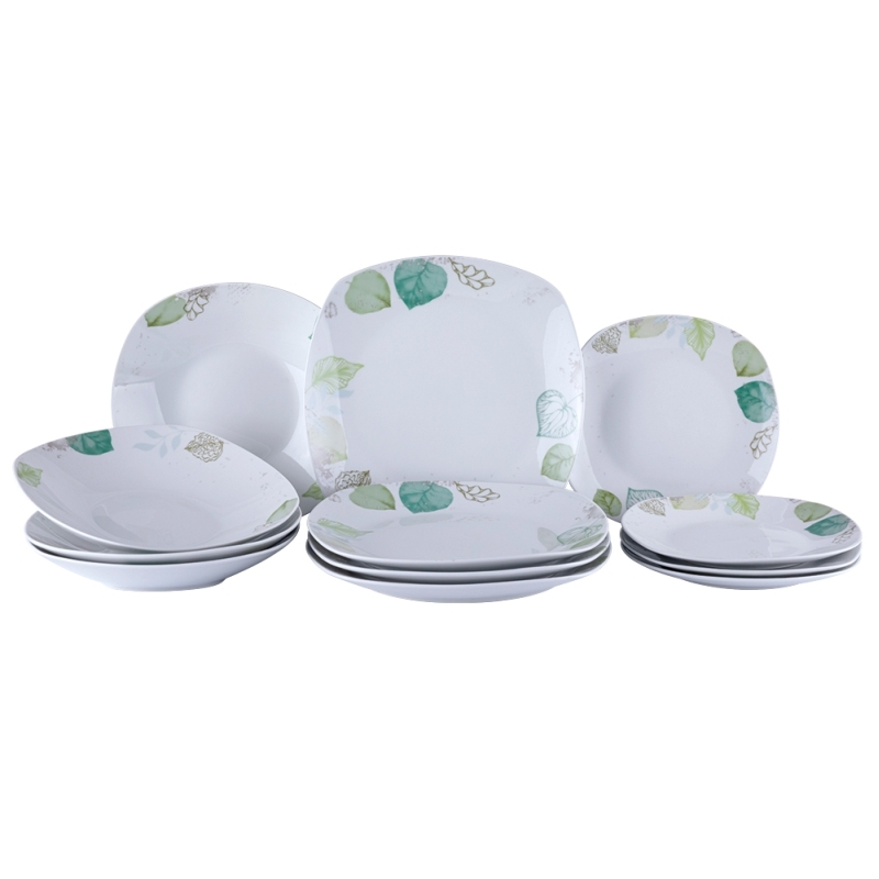 Jídelní souprava SPRING SPIRIT 12 dílů - 4x mělký talíř, 4x hluboký talíř, 4x desertní talíř. Talíře lze mýt v myčce nádobí a používat v mikrovlnné troubě. Materiál - porcelán. Rozměry - mělký talíř - 24,5x24,5 cm, hluboký talíř - 21,5x21,5 cm, desertní talíř 19x19 cm. przeczytaj całość