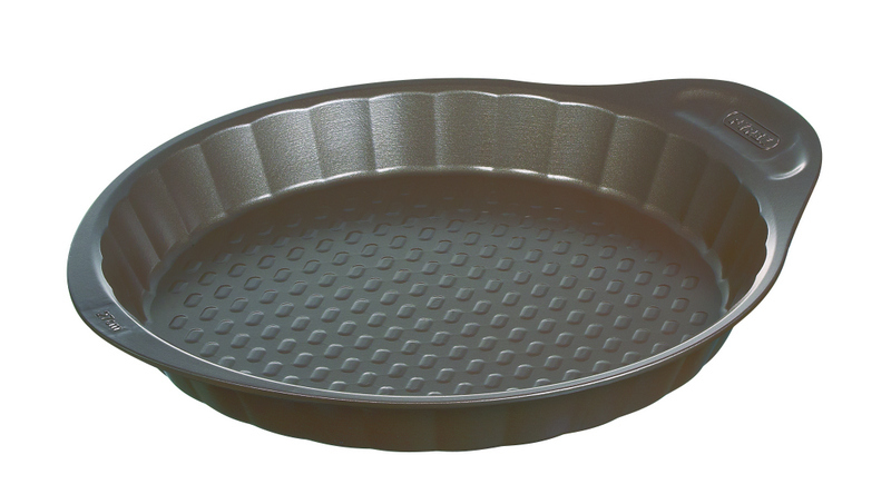 Zapékací oválná forma s nepřilnavým povrchem je vyrobena z vysoce kvalitní uhlíkové oceli s povlakem non-stick - odolný materiál, který dobře a rovnoměrně vede teplo a zabraňuje přilepení. Ta zaručuje rovnoměrné pečení a zároveň velkou odolnost. Forma má speciální extra širokou ergonomickou rukojeť, která umožňuje pohodlné uchopení a manipulaci. Vhodná do myčky nádobí. Rozměry - 35x23 cm.