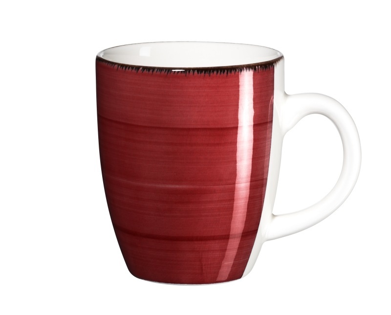 Keramický hrnek BEL TEMPO o objemu 380 ml. Je vhodný do myčky nádobí. Barva - červená. Rozměry - výška 10 cm, průměr 8,5 cm. przeczytaj całość