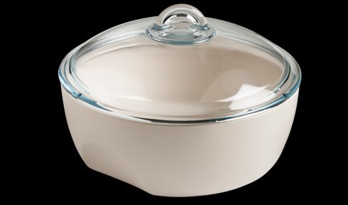 Zapékací keramická miska o objemu 2,5 l se skleněnou poklicí. Barva - krémová. Materiál - keramika, sklo. Rozměry - průměr 24 cm. przeczytaj całość