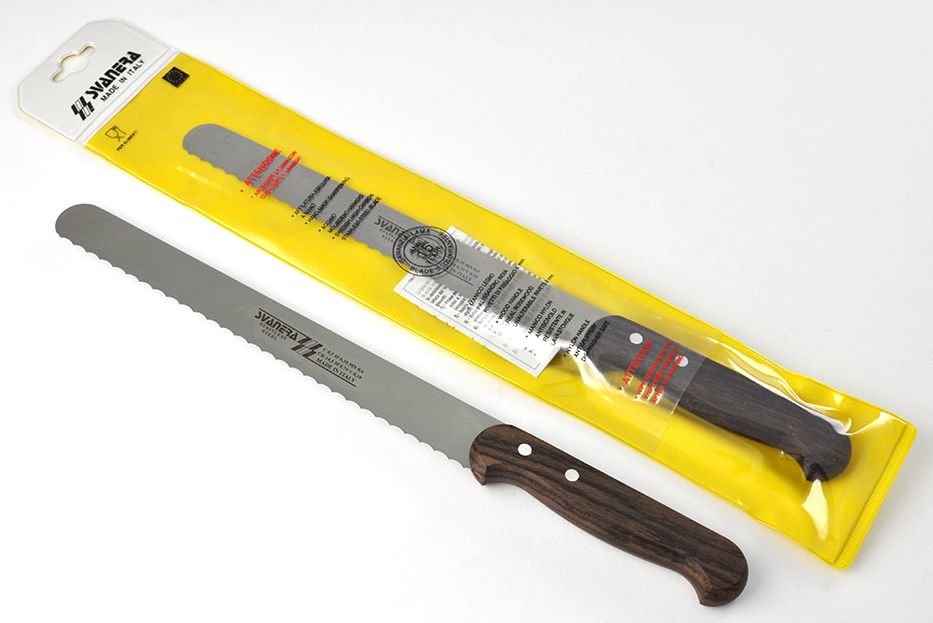 Vysoce kvalitní kovaný nůž na chleba s čepelí délky 23 cm a dřevěnou nýtovanou rukojetí, síla čepele 2 mm. 15 let záruka. Ručně broušené ostří. Doporučujeme umývat ručně. Italský výrobce. przeczytaj całość