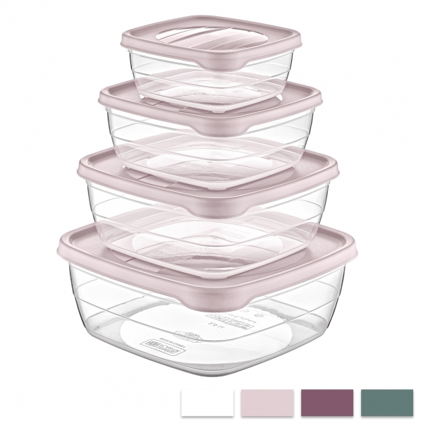 Sada dóz s víčky skvěle uchová potraviny v chladničce i mrazničce (do -25 °C), jsou skvělé na přenášení potravin, lze v nich ohřívat jídlo v MVT, můžete je použít do myčky na nádobí (do +95 °C). Sada 4 ks. Barevný assort víček. Materiál: plast. Rozměry: 0,5 l – 12,5x12,5x5 cm, 0,9 l -... przeczytaj całość