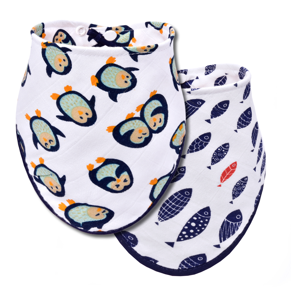 BIO Bambusový slintáček, penguins + fish / tučňáci + ryby - 2 ks