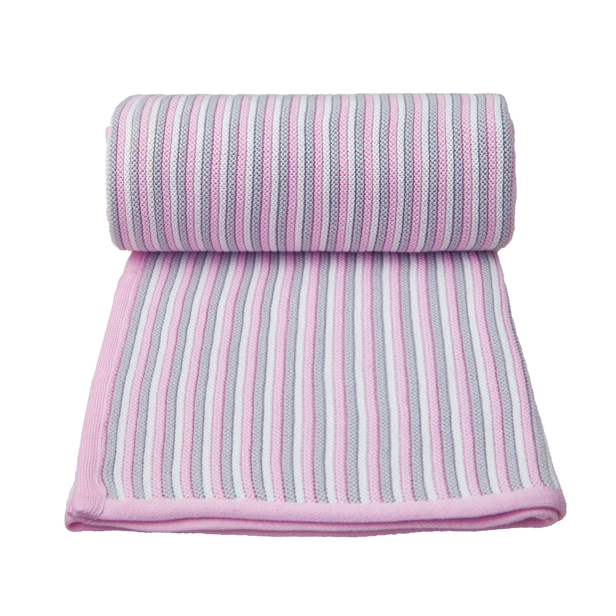 Dětská pletená deka T-tomi s proužkovým vzorem je vyrobena z kvalitní měkké příze. Lze ji použít jak do kočárku, tak i do postýlky či autosedačky. Je vhodná pro alergiky i citlivá miminka. Stane se elegantním doplňkem nejen Vašeho kočárku.