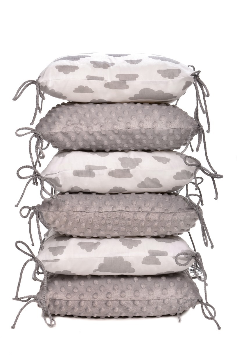 Polštářkový mantinel T-TOMI tvořený 6 kusy jednotlivých polštářků o velikosti 35 x 35 cm vyrobený ze 100% bavlny a z jemného, hřejivého a luxusního materiálu MINKY (3+3). Polštářky T-TOMI lze uvázat po boční straně postýlky a poskytnou tak Vašemu děťátku ochranu, pohodlí a bezpečí zároveň....