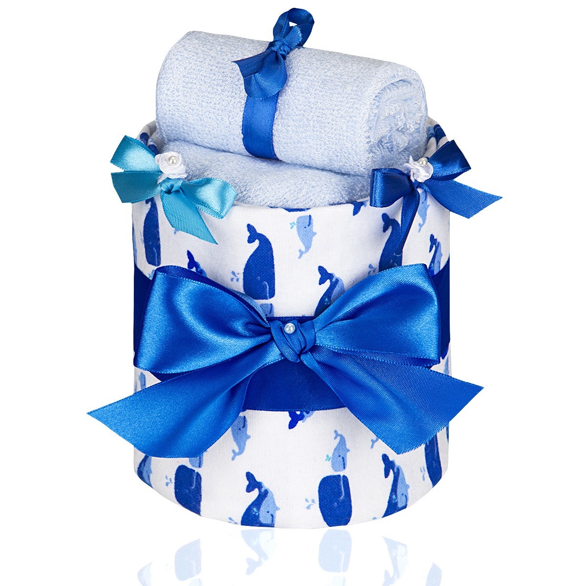 Ručně vyráběný plenkový dort T-tomi je krásným dárkem pro čerstvě narozená miminka nebo maminky v očekávání. Je balen v dárkové krabici s visačkou, na kterou je možné napsat vlastní věnování.