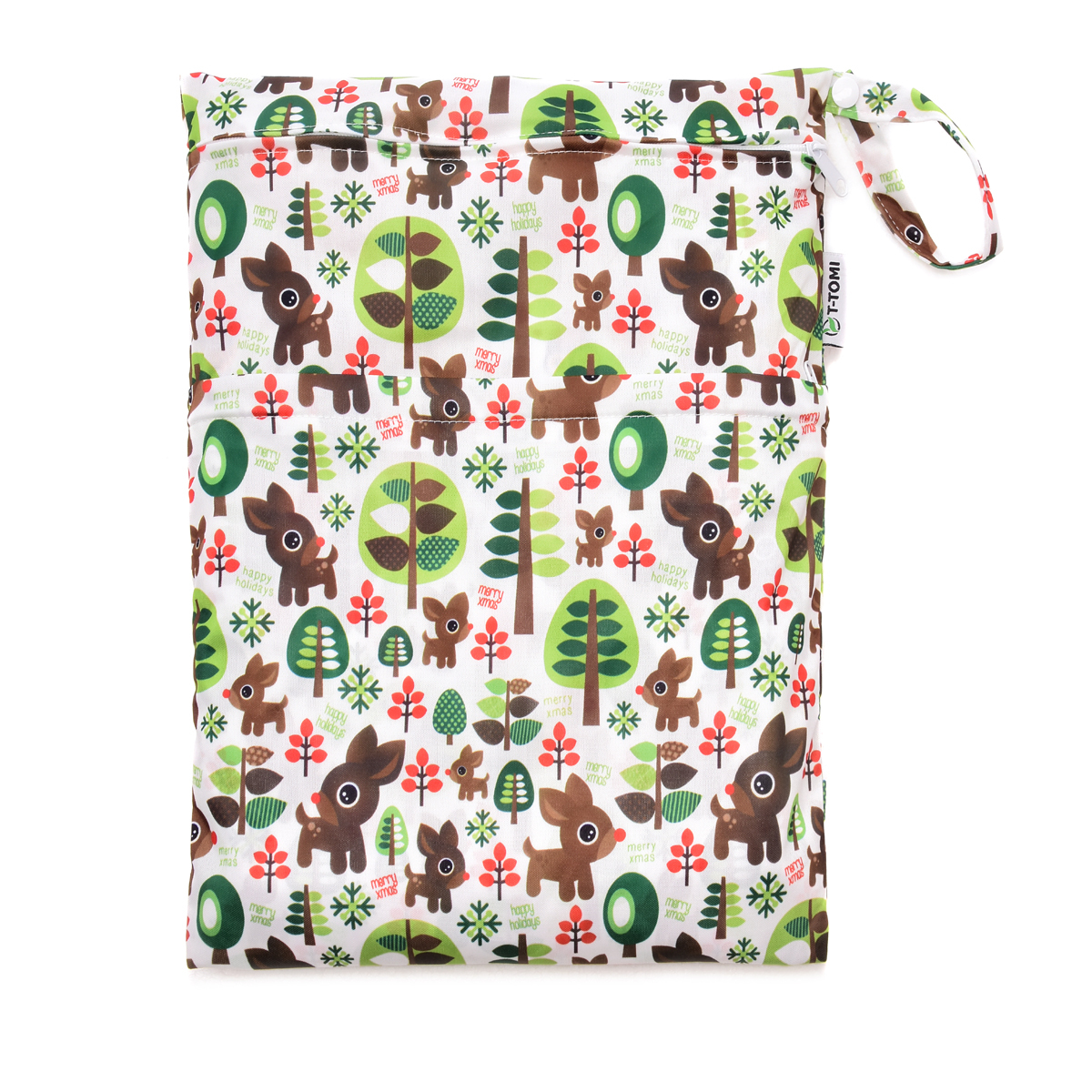 Nepromokavý sáček T-TOMI je vyrobený ze 100% polyesteru s PUL zátěrem. Díky dvěma velkým kapsám se zapínáním na zip a praktickým uchem s patentkou se stane Vaším nepostradatelným pomocníkem nejen doma ale i na cestách. Je vhodný nejen pro mokré pleny, ale i pro plavky, ručník, osušku, dudlík,...