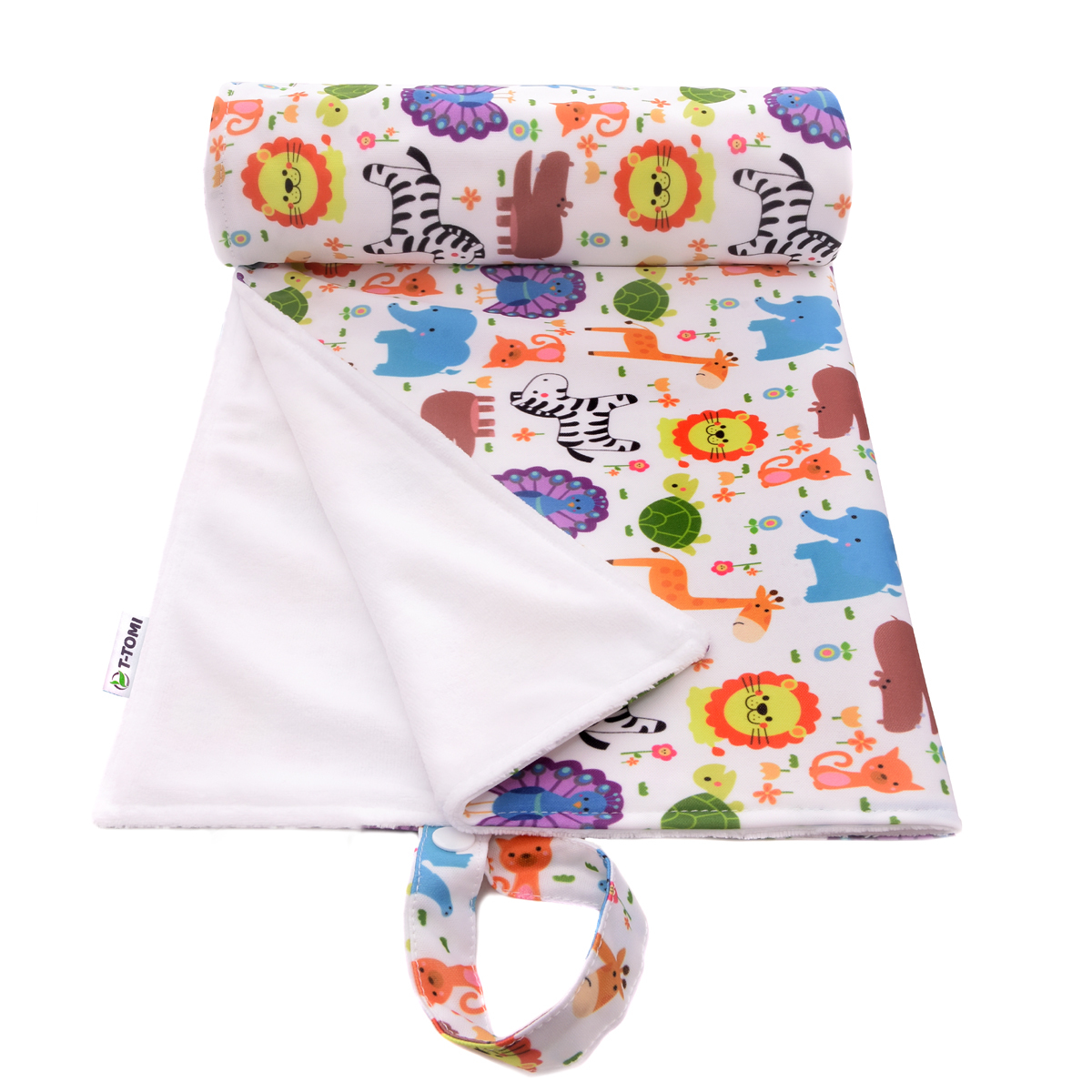 Pratelná přebalovací podložka T-TOMI, vyrobená z nepromokavého materiálu s dotykovou vrstvou z kojeneckého plyše, je praktická věc na doma i na cesty. Je možné ji využít na přebalování, jako hrací podložku, do kočárku nebo do postýlky. Podložku lze prakticky smotat do malé ruličky a vzít kamkoliv...