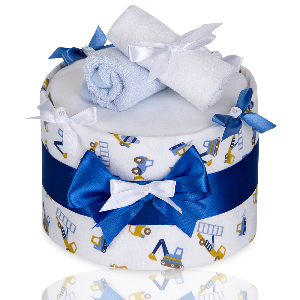 Ručně vyráběný plenkový dort T-tomi je krásným dárkem pro čerstvě narozená miminka nebo maminky v očekávání. Je balen v dárkové krabici s visačkou, na kterou je možné napsat vlastní věnování.