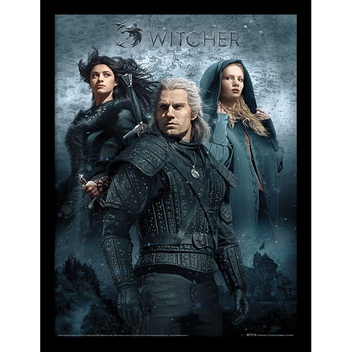 Zarámovaný obraz s hlavními hrdiny seriálu Zaklínač od Netflixu - s Geraltem z Rivie, čarodějkou Yennefer a Ciri, Lvíčetem z Cintry. Pěkný dárek pro fanoušky zaklínačských příběhů! przeczytaj całość