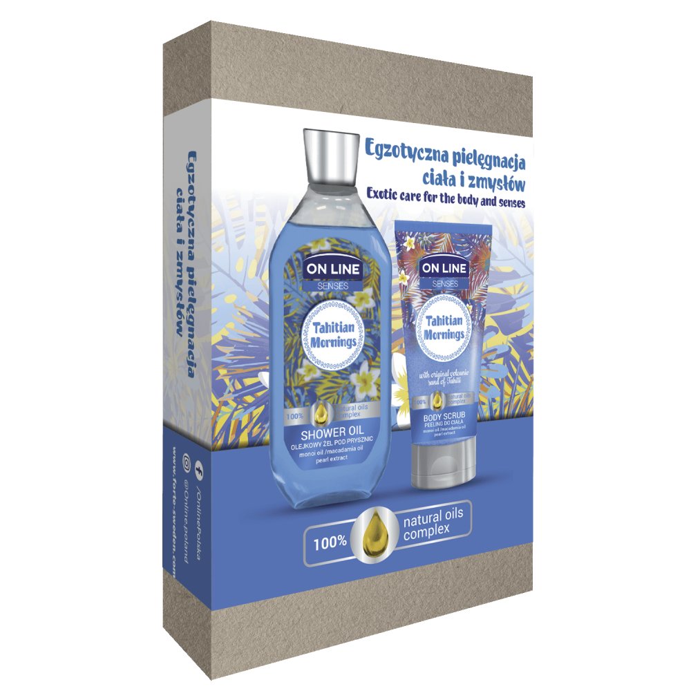 On line set Tahitian Mornings sprchový gel + tělový peeling