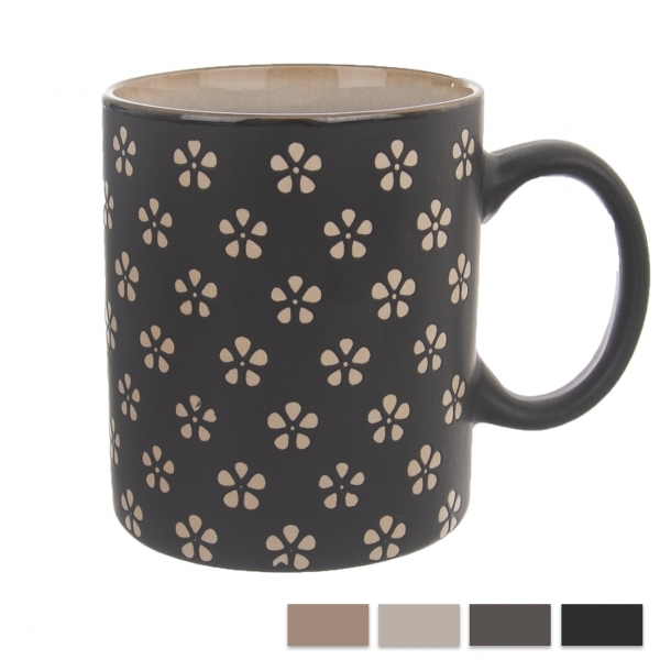 Kubek z uchem, z dekoracją. Materiał: ceramika. Różne dekoracje. Nadaje się do zmywarki i do mikrofalówki. Wymiary: pojemność 0,35 l, śr. 8 cm, wys. 9,5 cm. przeczytaj całość