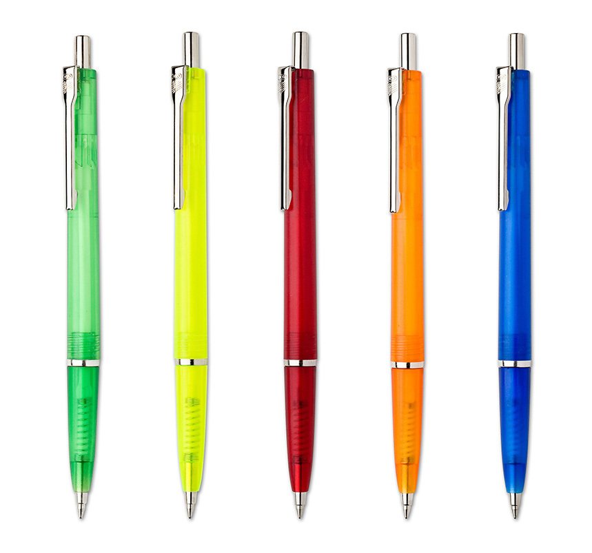 Kuličkové pero se stiskacím mechanismem. Transparentní tělo. Kovový klip. Hrot 0,8mm. Náplň X-20. przeczytaj całość