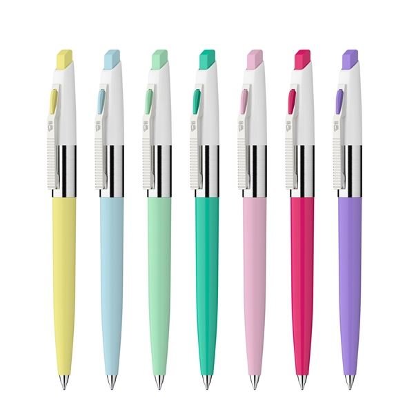 - Korpus długopisu wykonany z wysokiej jakości, kolorowego tworzywa sztucznego w różnych pastelowych odcieniach