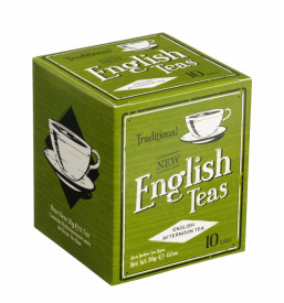 Čaj balený v papírové krabičce v designu NEW ENGLISH TEAS przeczytaj całość