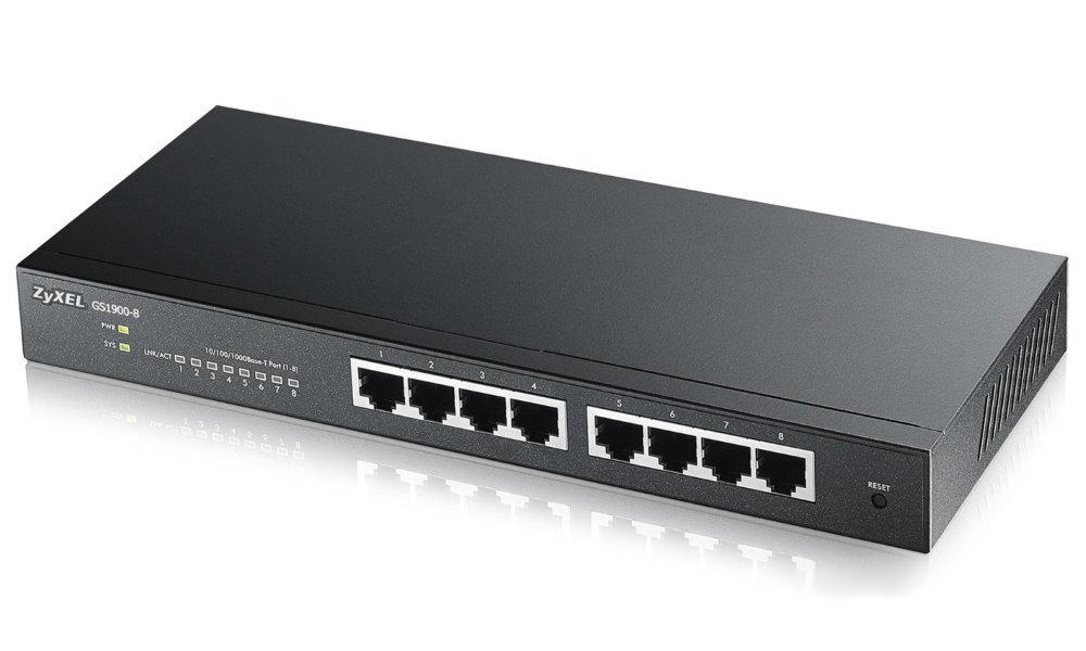 ZyXEL GS1900-8, 8-port Desktop Gigabit Web Smart switch: 8x Gigabit metal, IPv6, 802.3az (Green), Easy set up wizard, fa