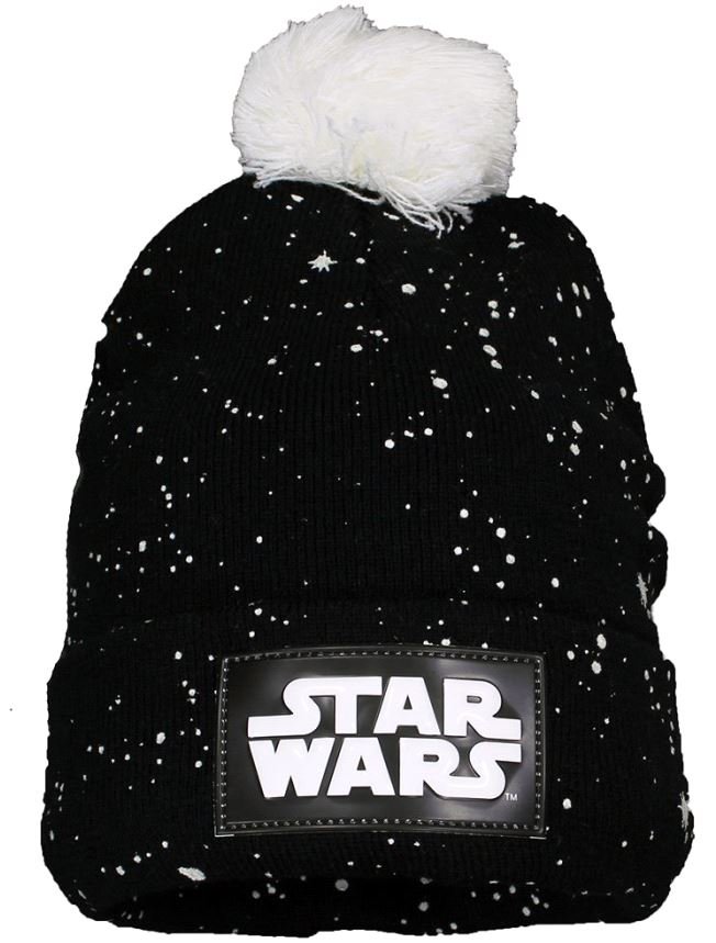 Oficiální čepice z katalogu produktů s logem, fotografiemi herců a grafikou ze slavné filmové sci-fi ságy Star Wars.Zboží je legálně licencováno a prodáváno se souhlasem vlastníků licenčních práv.Černá úpletová zimní čepice. Čepice s grafikou filmové sci-fi ságy Star Wars/Hvězdné války a logem...
