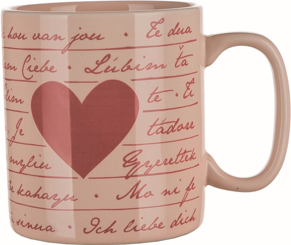 Hrnek I LOVE YOU o objemu 590ml. Lze používat v mikrovlnné troubě i v myčce nádobí (šetrný program). Materiál - keramika. Rozměry - výška 11,3cm, průměr horní 10cm. przeczytaj całość