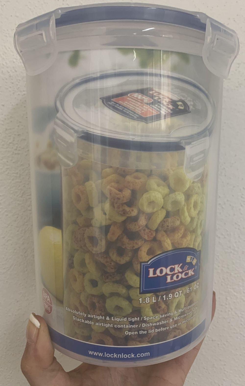 Dóza lock je bezpečná a funkční nádoba, vyrobená z kvalitního plastu, který je trvanlivý a odolává vysokým teplotám. Je 100% vzduchotěsná a tím zajišťuje dlouhodobou čerstvost uchovávaných potravin. Čtyři pohyblivé "klipy" zajišťující víko jsou odolné proti opotřebení. Dóza je vhodná do chladničky, mrazničky, mikrovlnné trouby i do myčky nádobí. Objem dózy 1,8 l. Rozměry - průměr 11,6 cm.