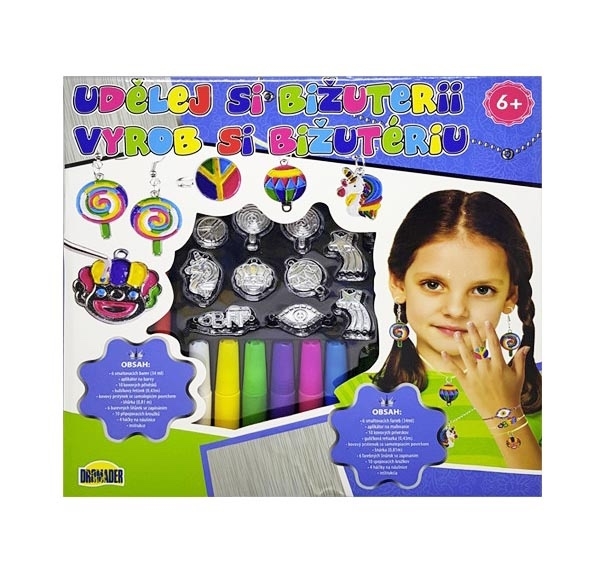 Smaltovaná bižuterie. V balení naleznete 6 smaltovacích barev, aplikátor na malování, 10 kovových přívěsků, kuličkový řetízek 43 cm, šňůrku 81 cm, 6 barevných tkaniček, 10 spojovacích krúžkov4 háčky na náušnice a návod. Veselou tvůrčí zábavu. przeczytaj całość