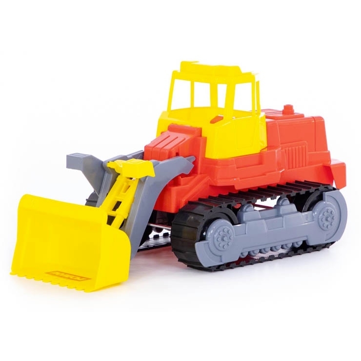 Pásový traktor s radlicí mechanicky pohyblivou, bez pohonu, vhodný na hru do interiéru i na písek, certifikovaný pro děti od 1 roku věku. przeczytaj całość