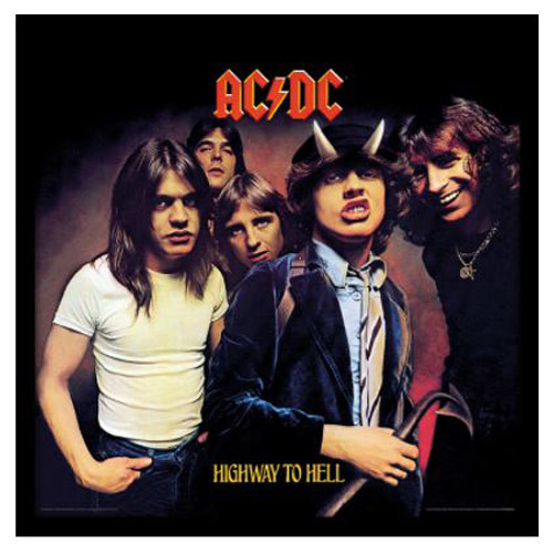 Velký plakát v rámu s grafikou kapely AC/DC Highway to Hell.