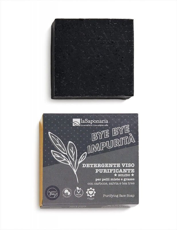 Po mięcie pachnące mydło z detoksykującym węglem aktywnym i kremowo delikatną pianą najlepiej pasuje do cery mieszanej i tłustej z niedoskonałościami. Specjalnie dobrane składniki roślinne regulują wydzielanie sebum i oczyszczają zanieczyszczone pory. Ekstrakty z imbiru, czerwonego wina i kadzidłowca wspomagają mikrobiom skóry, olej neem wraz z olejami z rozmarynu, szałwii i drzewa herbacianego działają antybakteryjnie i wspomagają gojenie. Kostka mydlana posiada certyfikat jakości Cosmetici Biologici i zostanie wysłana do domu bez plastiku, zapakowana jedynie w pudełko z recyklingowanego kartonu.