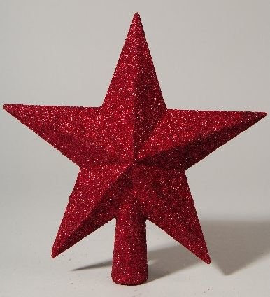 Vánoční špička na stromeček ve tvaru hvězdy. Barva - červená s glitry. Rozměry - průměr 19 cm. przeczytaj całość