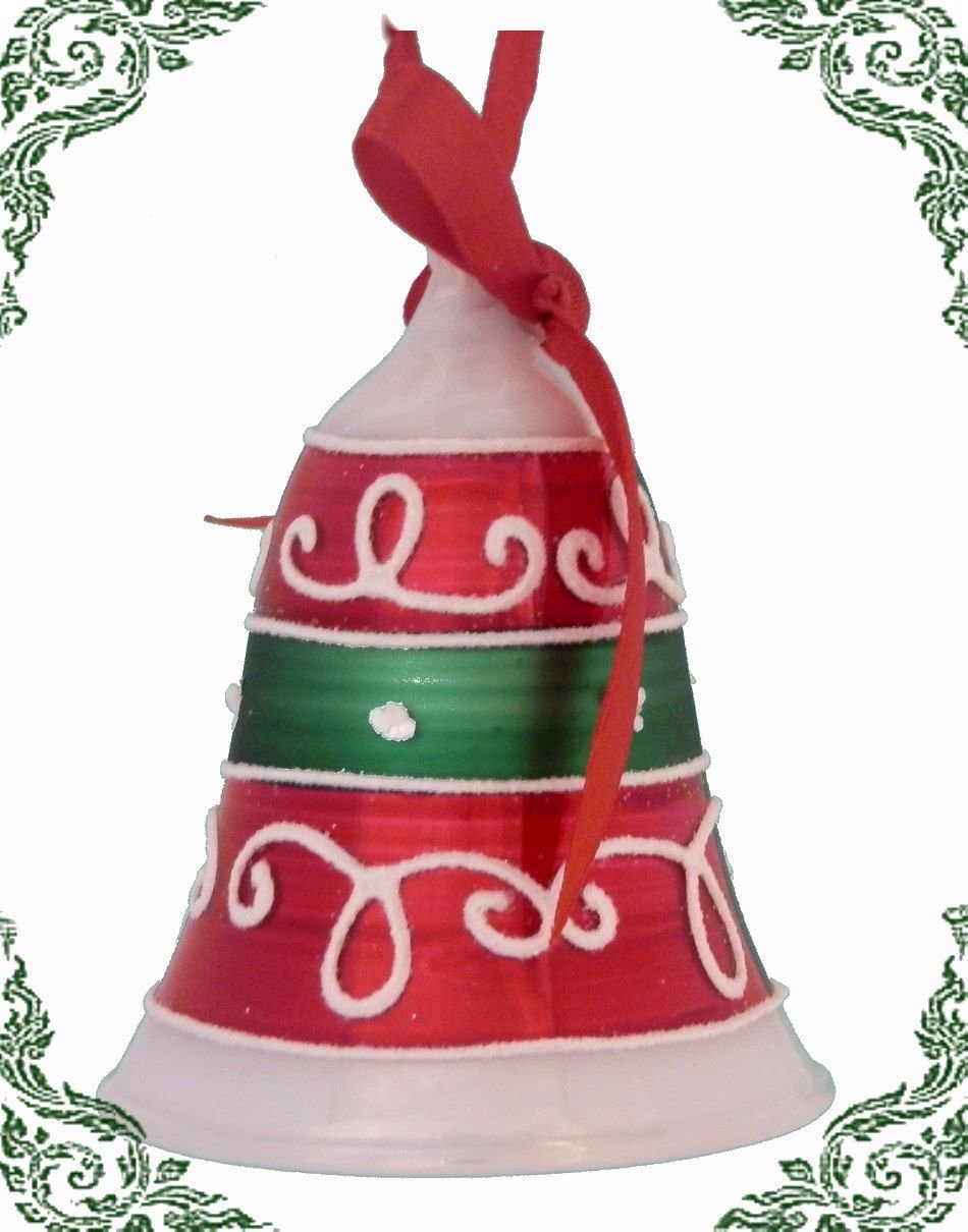 Vánoční ozdobička na stromeček - zvonek. Materiál - sklo. Rozměry - výška 9 cm, průměr 6,5 cm. przeczytaj całość