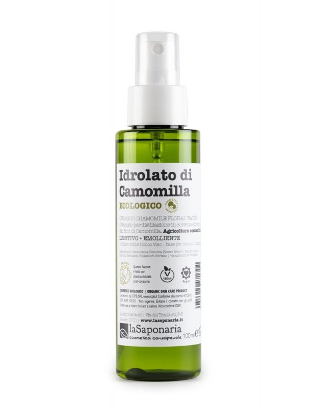 Naturalna świadoma kosmetyka jest wytwarzana z miłością, w jakości BIO tak bardzo, jak to tylko możliwe, z misją "zostawić świat nieco lepszym miejscem". To jest laSaponaria, która poruszy Twoje serce. Pięknie pachnie, jest produkowana z najwyższej jakości lokalnych surowców i jednocześnie pomaga, gdzie się da. Wspiera lokalnych małych rolników, projekty społeczne oraz fair trade. Wszystko jest efektem rzetelnej, ręcznej produkcji rzemieślniczej i uwierz, że to poczujesz. Oczywiste jest brak testów na zwierzętach i brak surowców pochodzenia zwierzęcego. Nie zapomina się również o opakowaniach, które w dużej mierze są recyklingowane. Spróbuj raz, a zechcesz ponownie... Certyfikaty:Cosmetici Biologici Jak recyklingować:Jeżeli butelki nie wykorzystasz w domu, ponownie ją poddaj recyklingowi w pojemniku na plastik. Materiał opakowania:Przetworzony (post-consumer) plastik Objętość:100 ml Udział surowców roślinnych BIO:99 % Udział surowców naturalnych:100 % Pochodzenie zapachu:naturalne Skład:Chamomilla Recutita Flower Water*, Benzyl Alcohol, Sodium Benzoate, Potassium Sorbate. *z rolnictwa ekologicznego Kraj pochodzenia:Wyprodukowano we Włoszech