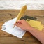 - Zawartość: 5 zaproszeń, 5 arkuszy papieru listowego, zestaw naklejek, czarny długopis/pióro.