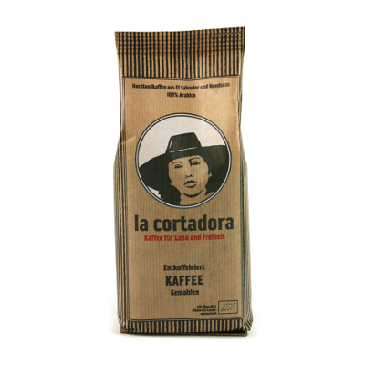 Tylko 1/10 kawy z Salwadoru jest uprawiana i eksportowana przez drobnych rolników, którzy połączyli się w małe spółdzielnie. Ta kawa należy do tej 1/10. La Cortadora to kawa nowej gospodarki światowej. Nie tylko nierówne stosunki własnościowe tworzą obecną trudną sytuację drobnych producentów kawy w Salwadorze. Cały liberalizowany rynek kawy jest niesprawiedliwy. Nieustanne rozszerzanie plantacji kawy i zniesienie międzynarodowych porozumień handlowych dotyczących kawy w 1989 r. prowadzą do ogromnego obniżania cen skupu kawy. Sytuacja ta zwiększa zyski ogromnych koncernów sprzedających kawę, ale wyzyskuje i odbiera dochody drobnym producentom i zbieraczkom kawy, którzy nie są w stanie pokryć kosztów utrzymania. El Puente kupuje tę kawę bezpośrednio od salwadorskich spółdzielni po gwarantowanej cenie min. 1,32 $ za funt kawy. Jeśli cena kawy na rynku światowym wzrośnie powyżej 1,20 $, El Puente wypłaca 1,20 $ plus 10%. Wszystkie rodzaje kawy oferowane przez Fair Trade Centrum są handlowane w ramach Fair Trade. Fair Trade zapewnia godne warunki pracy, gwarancję cenową, przedfinansowanie produkcji, dopłaty na projekty rozwojowe, długoterminową współpracę, dopłaty za produkcję ekologiczną oraz surowe kontrole jakości zapewniające doskonałą jakość. Palona kawa mielona.