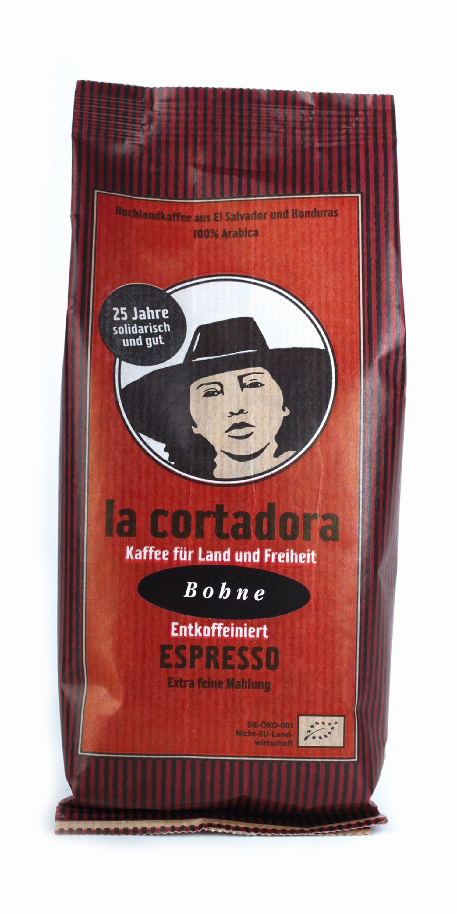 Bio zrnková káva La Cortadora bez kofeinu.Vysokohorská káva bez kofeinu ze Salvadoru a Hondurasu. 100% arabica.Pouze 1/10 salvadorské kávy je pěstována a exportována drobnými zemědělci, kteří se spojili do malých družstev. Tato káva mezi tuto 1/10 patří. La Cortadora je káva nového světového...