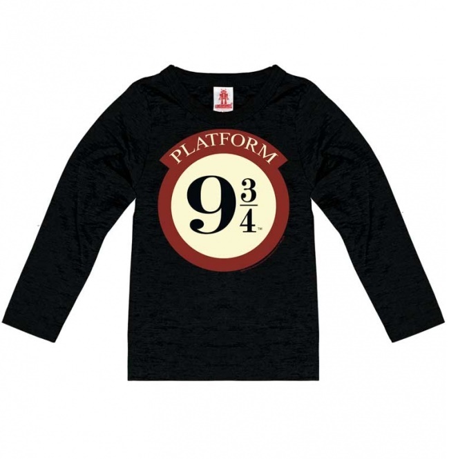 Dětské černé tričko s dlouhým rukávem a motivem nástupiště 9 a 3/4 z filmu Harry Potter.