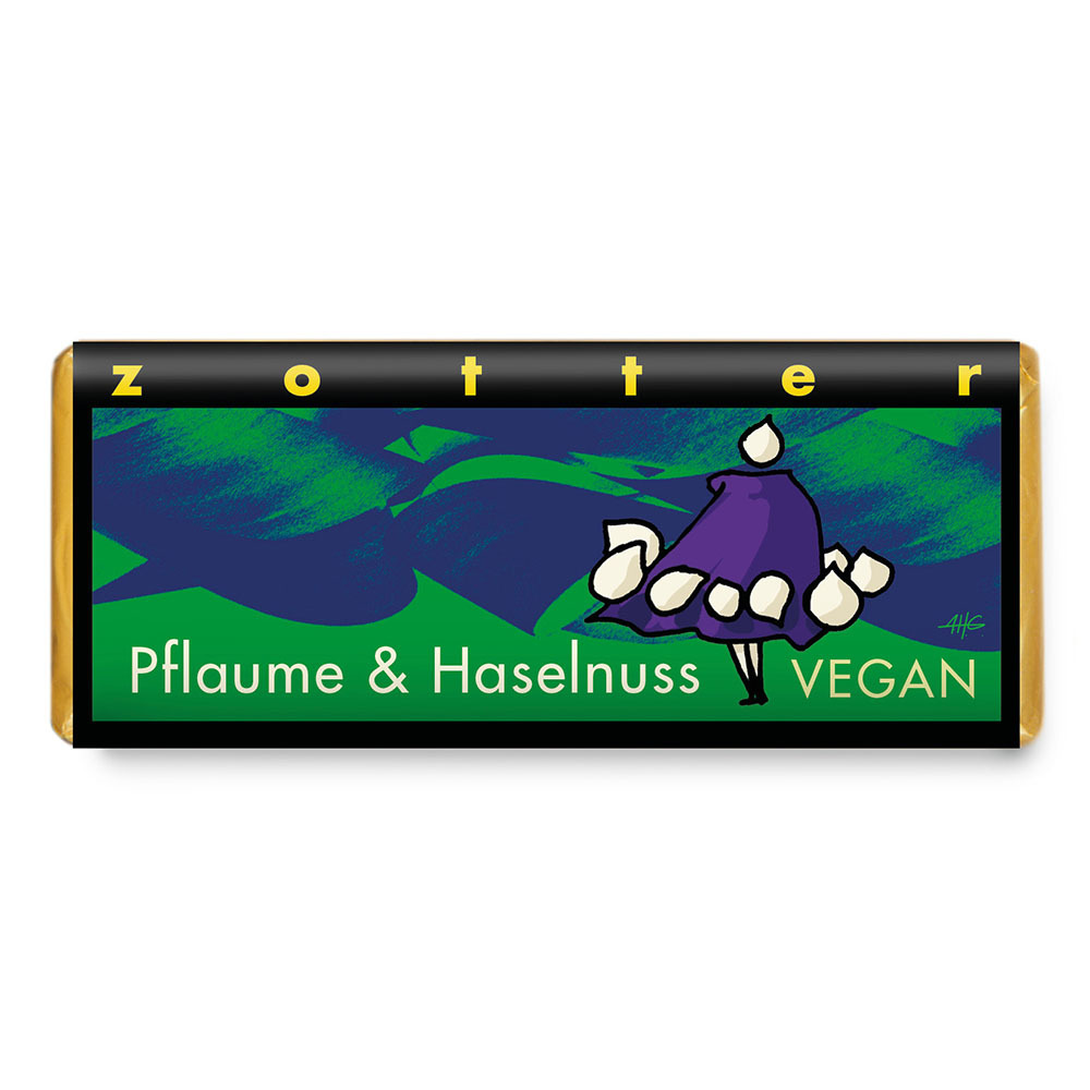 Zotter Bio 100% hořká čokoláda Švestky a ořechy, 70 g