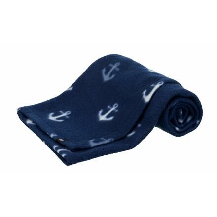 Flísová deka BARRY 200 x 150 cm modrá s bílými kotvami - DOPRODEJ