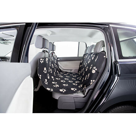 Autopotah nylon/flís, černý s béžovými packami 1,40 x 1,45 m