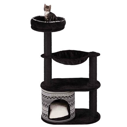 s plyšovým potahem sloupky omotané přírodním sisalem jeskyně z čalounické pevné látky polštář v budce lze vyjmout houpací lehátko s robustním kovovým rámem polstrovaná gaučová deska s odnímatelným plyšovým lůžkem materiál: plyš, sisal rozměr základny: 65 x 38 cm průměr sloupku: 9 cm výška: 112... przeczytaj całość