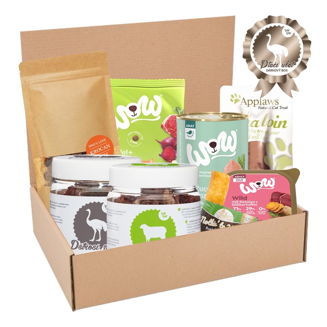 Výběr 11 nejlepších lahůdek s Raw Raw pamlsky Pštrosí maso zabalené do luxusního dárkového boxu. Vybrali jsme za vás ty nejlákavější dobroty s krůtím a kuřecím masem, doplnili o tuňákový steak, jako TOP lahůdku přidali Raw Raw pamlsky Pštrosí maso z limitované edice a navrch dali malé překvapení...